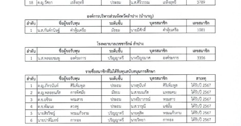ประกาศรายชื่อผู้ได้รับทุนสนับสนุนการศึกษาแก่บุตรสมาชิก ประจำปี 2568