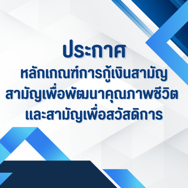 ประกาศ เรื่อง หลักเกณฑ์การกู้เงินสามัญ สามัญเพื่อพัฒนาคุณภาพชีวิต และสามัญเพื่อสวัสดิการ