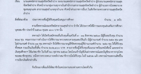 ประกาศรายชื่อผู้ได้รับทุนสนับสนุนการศึกษาแก่บุตรสมาชิก ปี 2563