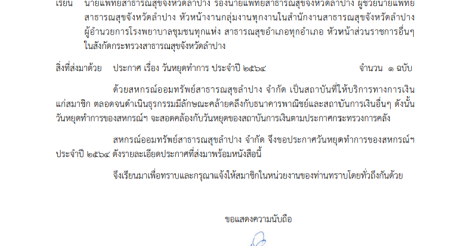 วันหยุดทำการประจำปี 2564