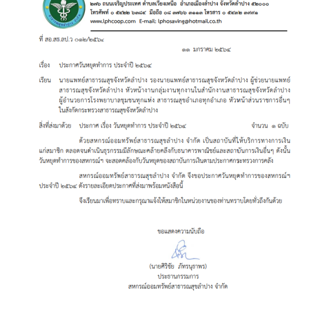 LAMPANG PUBLIC HEALTH SAVING AND CREDIT COOPERATIVE LIMITED