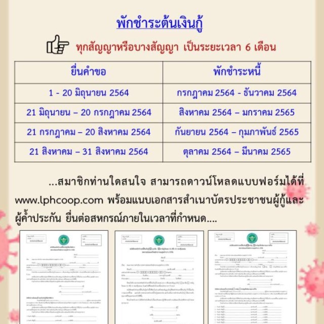 สหกรณ์ออมทรัพย์สาธารณสุขลำปาง จำกัด ได้จัดทำโครงการช่วยเหลือสวัสดิการสมาชิกฯ ในสถานการณ์การแพร่ระบาดของไวรัสโคโรนา 2019 ที่ส่งผลกระทบต่อสมาชิกและครอบครัว