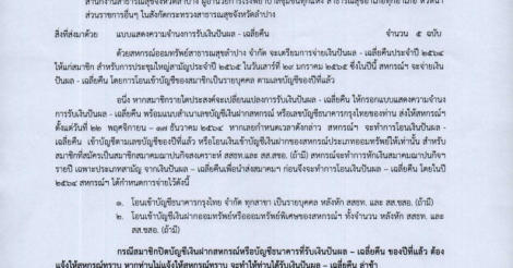โดยการโอนเข้าบัญชีสมาชิกเป็นรายบุคคล ตามเลขปัญชีปีที่แล้ว หากประสงค์เปลี่ยนแปลงของให้กรอกแบบแสดงความจำนง พร้อมสำเนาเลขบัญชีเงินฝาก รายละเอียดตามเอกด้านล่างสารแนบนี้