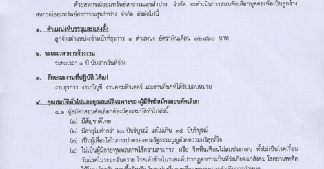 สหกรณ์ออมทรัพย์สาธารณสุขลำปาง จำกัด ประกาศรับสมัครบุคคลเพื่อสอบคัดเลือกเป็นลูกจ้างสหกรณ์ ตำแหน่ง เจ้าหน้าที่ธุรการ จำนวน 1 ตำแหน่ง สนใจสามารถยื่นสมัครสอบด้วยตนเองได้ที่สหกรณ์ออมทรัพย์สาธารณสุขลำปาง จำกัด ระหว่าง 7-15 มีนาคม 2565 รายละเอียดตามประกาศด้านล่างนี้
