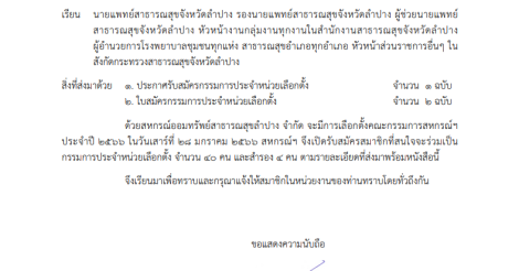 ด้วยสหกรณ์ออมทรัพย์สาธารณสุขลําปาง จํากัด จะมีการเลือกตั้งคณะกรรมการสหกรณ์ฯ