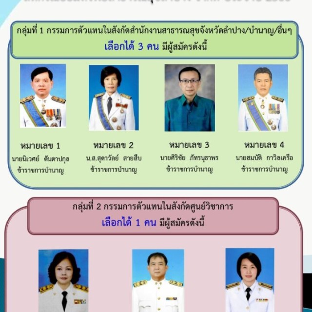 บัดนี้ ได้ครบกําหนดเวลาการรับสมัครเป็นกรรมการสหกรณ์ฯ แล้ว สหกรณ์ออมทรัพย์สาธารณสุข ลําปาง จํากัด จึงประกาศรายชื่อและหมายเลขผู้สมัครเลือกตั้งกรรมการสหกรณ์ฯ ดังนี้