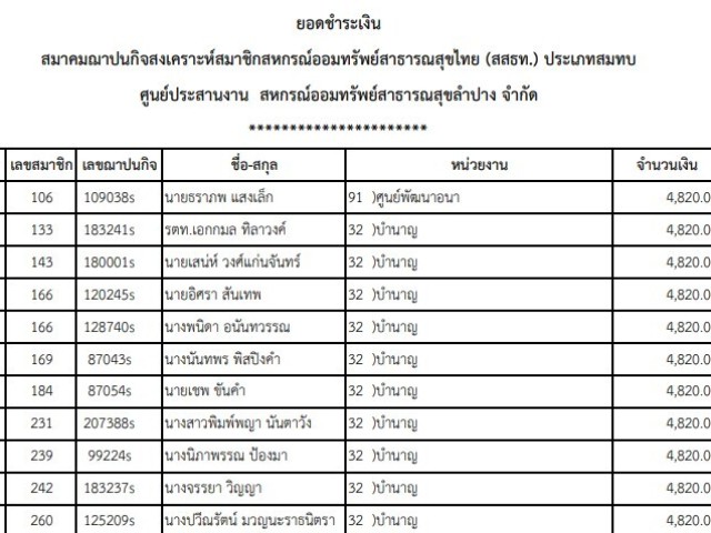 สหกรณ์ออมทรัพท์สาธารณสุขลำปาง จำกัด ขอแจ้งเรียกเก็บเงินสมาชิก ดังนี้ 1. สมาคมฌาปนกิจสงเคราะห์สมาช...