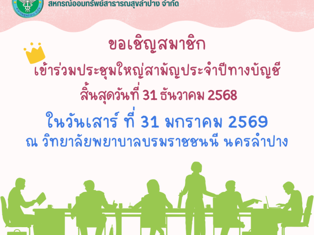 ขอเชิญชวนสมาชิกข้าราชการบำนาญ เข้าร่วมโครงการประชุมสัญจรพบสมาชิก ครั้งที่ 3 ในวันอังคาร ที่ 5 สิงหาค...