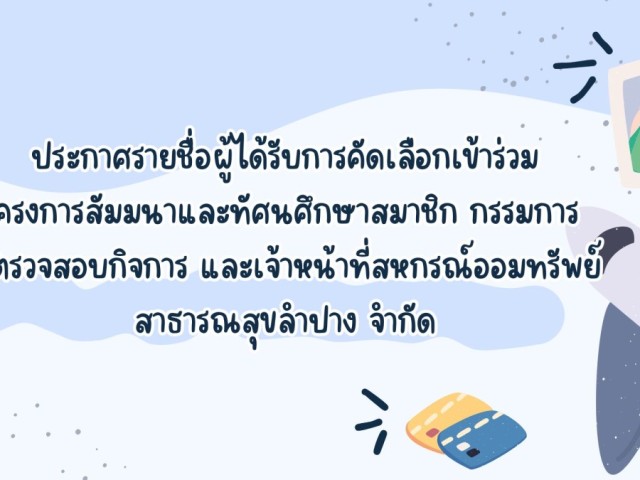 ประกาศสหกรณ์เรื่อง รายชื่อผู้มีสิทธิ์สอบคัดเลือกเป็นเจ้าหน้าที่สหกรณ์ออมทรัพย์สาธารณสุขลำปาง จำกัด